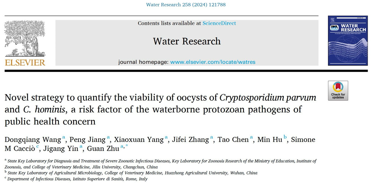 近日,永利yl23455朱冠教授团队于国际水资源顶级期刊《Water Research》发表题为“Novel strategy to quantify the viability of oocysts of Cryptosporidium parvum and C. hominis, a risk factor of the waterborne protozoan pathogens of public health concern”的论文,报道了定量检测水源中隐孢子虫卵囊活力的新方法。此研究由王东强(博士生)等领衔,旨在解决现有检测方法无法灵敏有效区分隐孢子虫种类和活力的问题,以提供更准确的公共卫生风险评估手段。