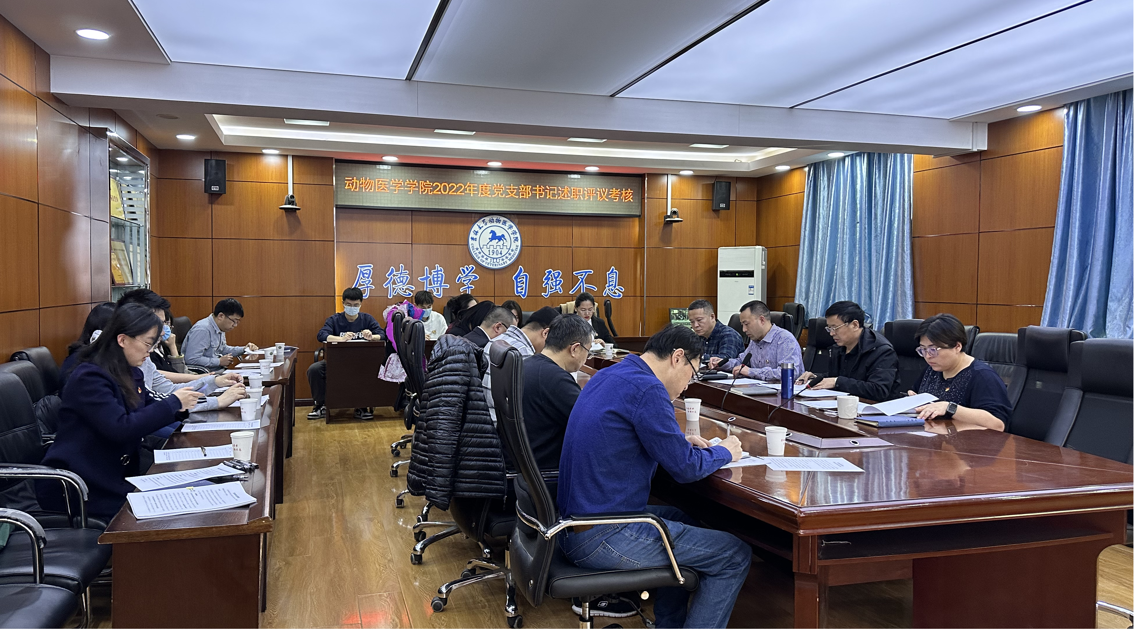 2023年3月16日下午,动物医学公司党委召开2022年度党支部书记述职考评会,公司党委委员以及全体党支部书记参加了此次会议,会议由党委书记饶家辉主持。