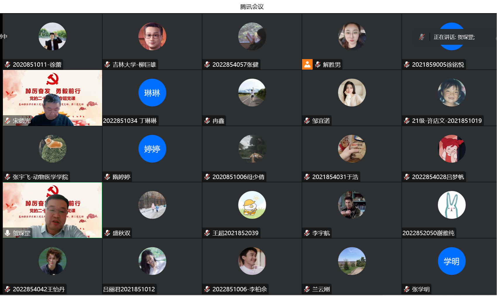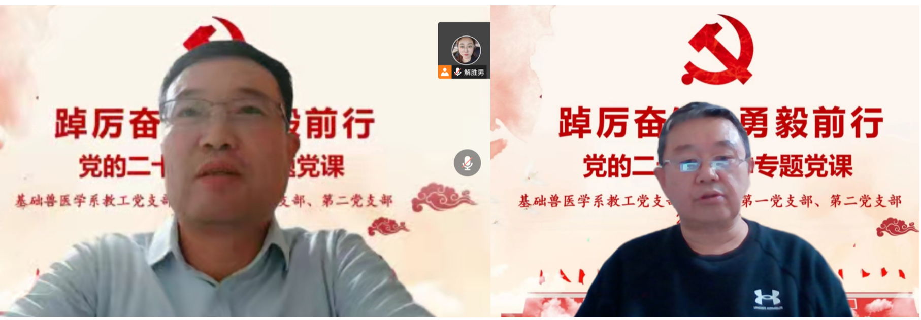 2022年12月1日,基础兽医学系教工党支部联合研究生党支部线上开展学习党的二十大精神主题党日活动。活动由基础兽医学系教工党支部书记宋德光教授主持,永利yl23455副经理贺文琦教授主讲党课。基础兽医学系教工党支部、研究生第一党支部、第二党支部全体党员及入党积极分子90余人参加线上活动。