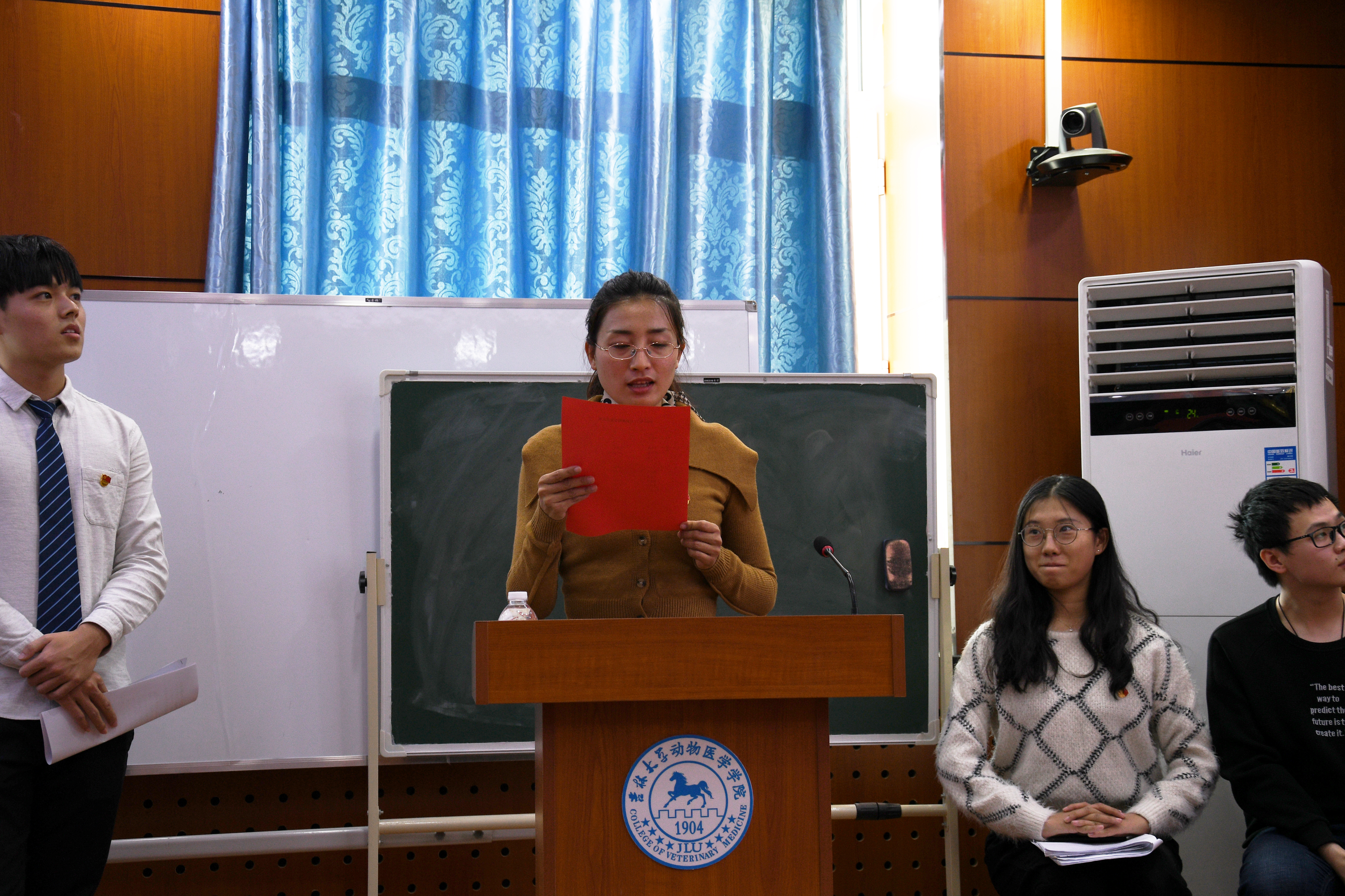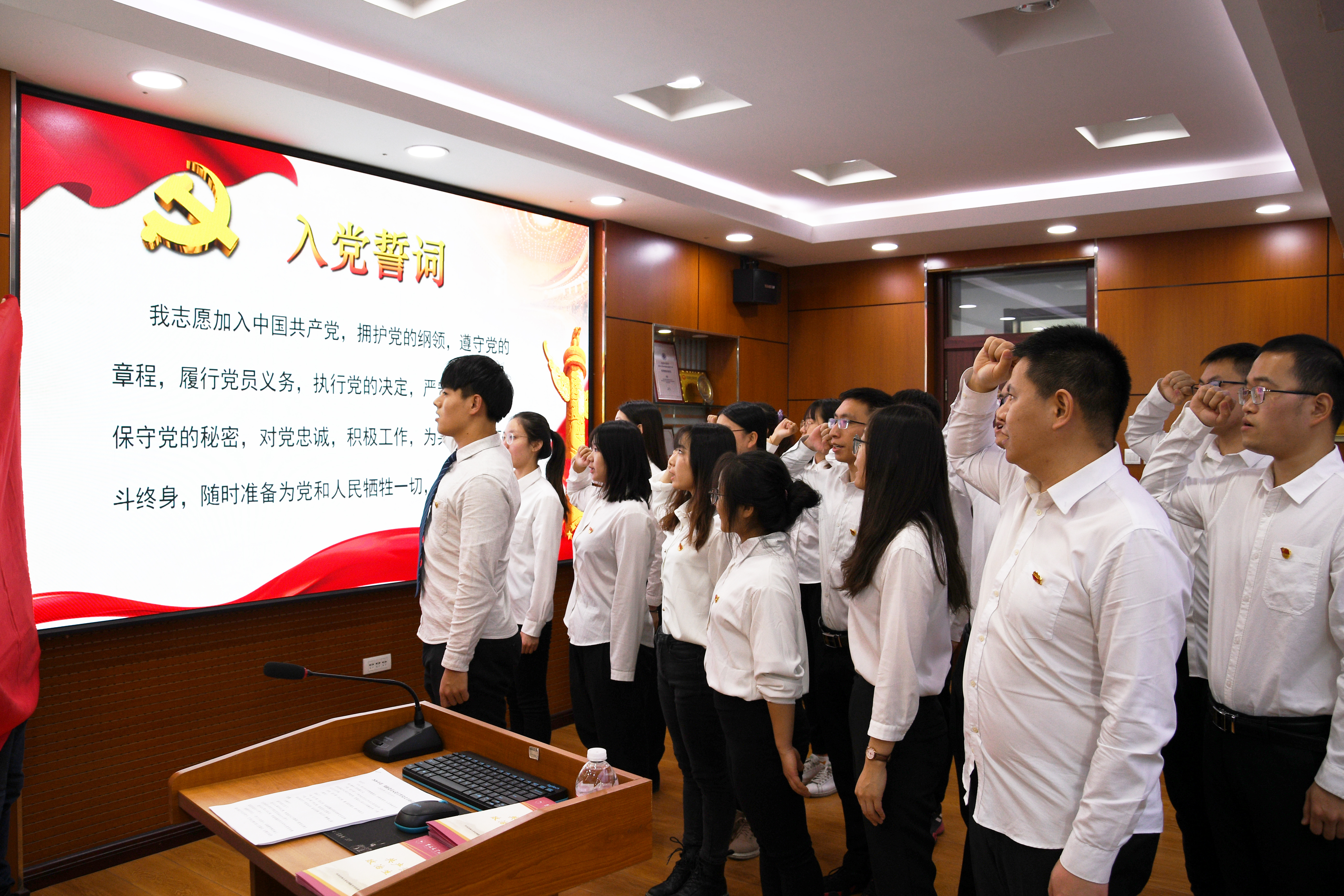 2020年12月25日下午1点整,动物医学公司党委在兽医楼三楼会议室召开了庄严而隆重的新党员入党宣誓活动。公司党委副书记栾志伟、党委办公室主任周靓参加了此次活动。