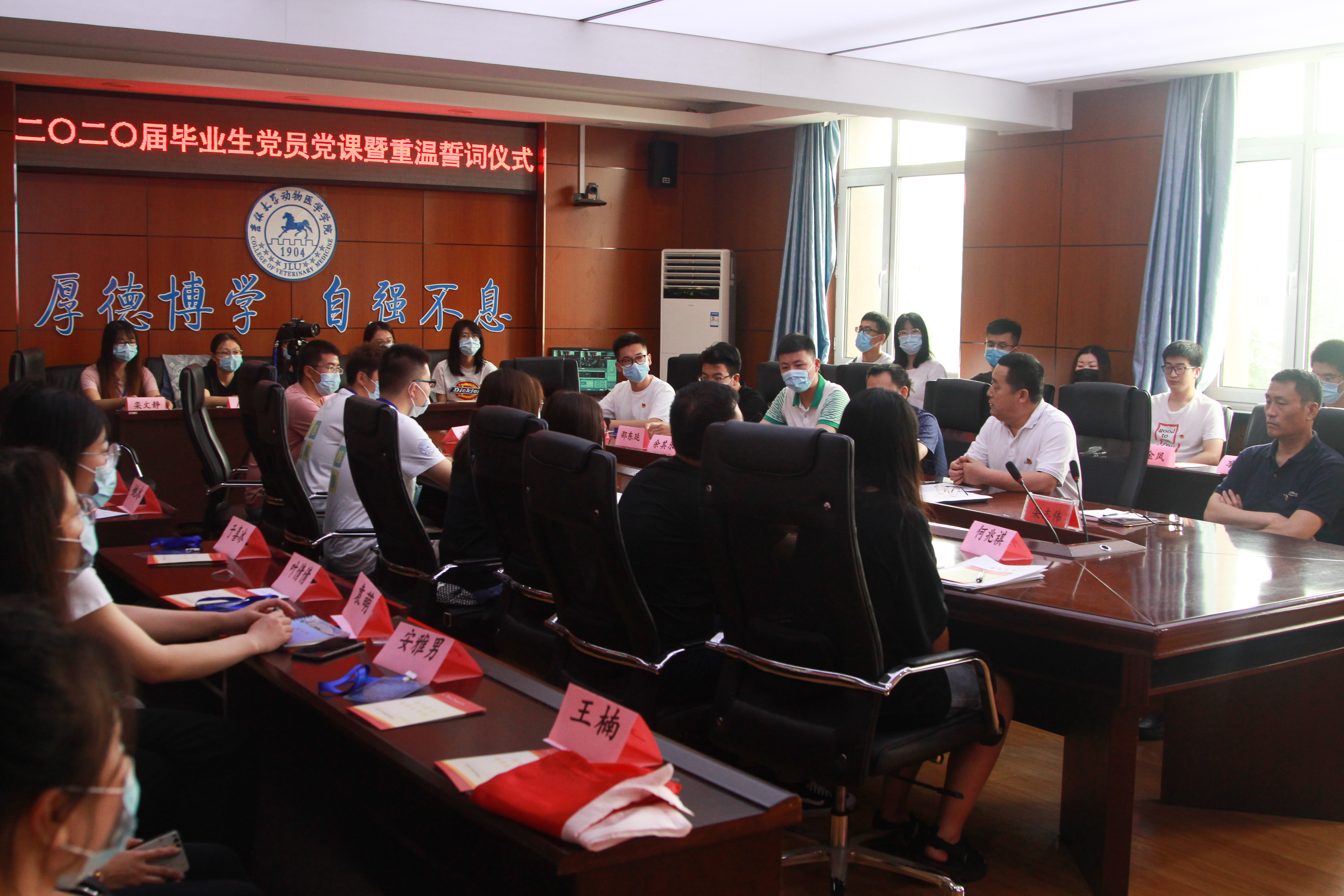 6月24日上午九点,永利yl23455在综合楼三楼会议室举办二〇二〇届毕业生党员党课暨重温入党誓词仪式。公司党委书记王彦清,副书记栾志伟、饶家辉,以及全体毕业生党员参加了此次会议。