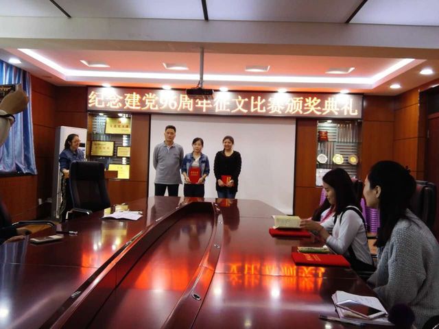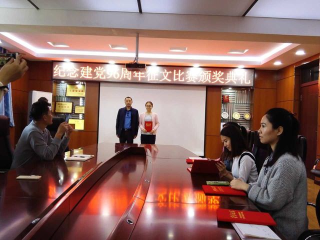 首先,栾志伟副书记宣读了“庆祝建党96周年”征文比赛获奖名单。接下来,李赫老师、栾志伟副书记和饶家辉副书记依次为获得三等奖、二等奖和一等奖的同学进行颁奖。颁奖后,本次征文大赛一等奖获得者卢葛锦代表获奖者发言。