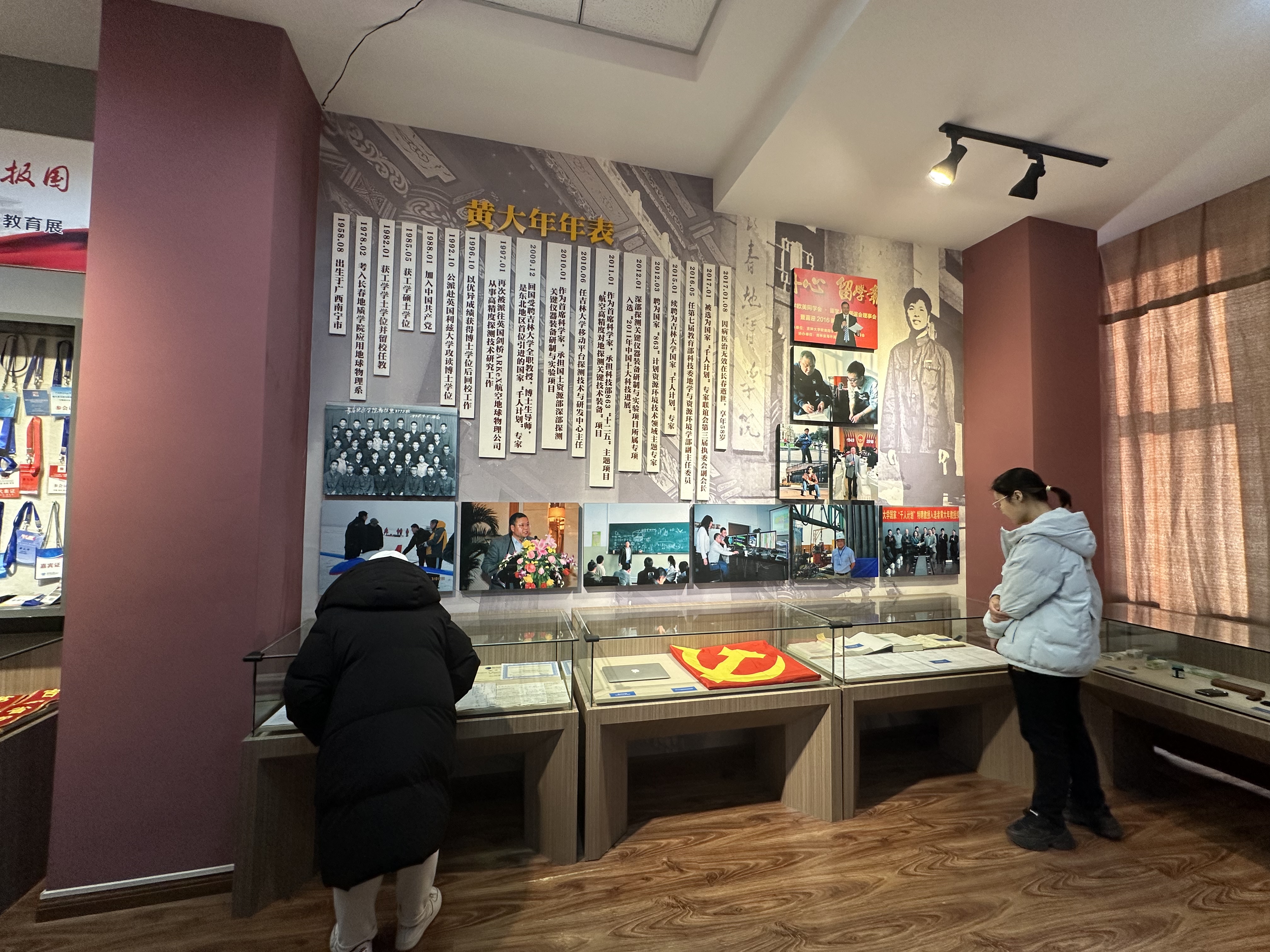 一张年表,一个微型的纪录片,浓缩了黄大年老师呕心沥血、刻苦钻研,为祖国科研事业做出卓越贡献的一生;而一个个名誉称号,一张张荣誉证书,一个个科研成果,无一不是他对 “只要祖国需要,我必全力以赴”承诺的践行。同学们被黄大年老师“心有大我、至诚报国“的赤子情怀,”淡泊名利、甘于奉献“的高尚情操和”教书育人、敢为人先“的敬业精神深深地感染和激励,并将黄大年老师”振兴中华,乃我辈之责“的嘱托牢记于心。