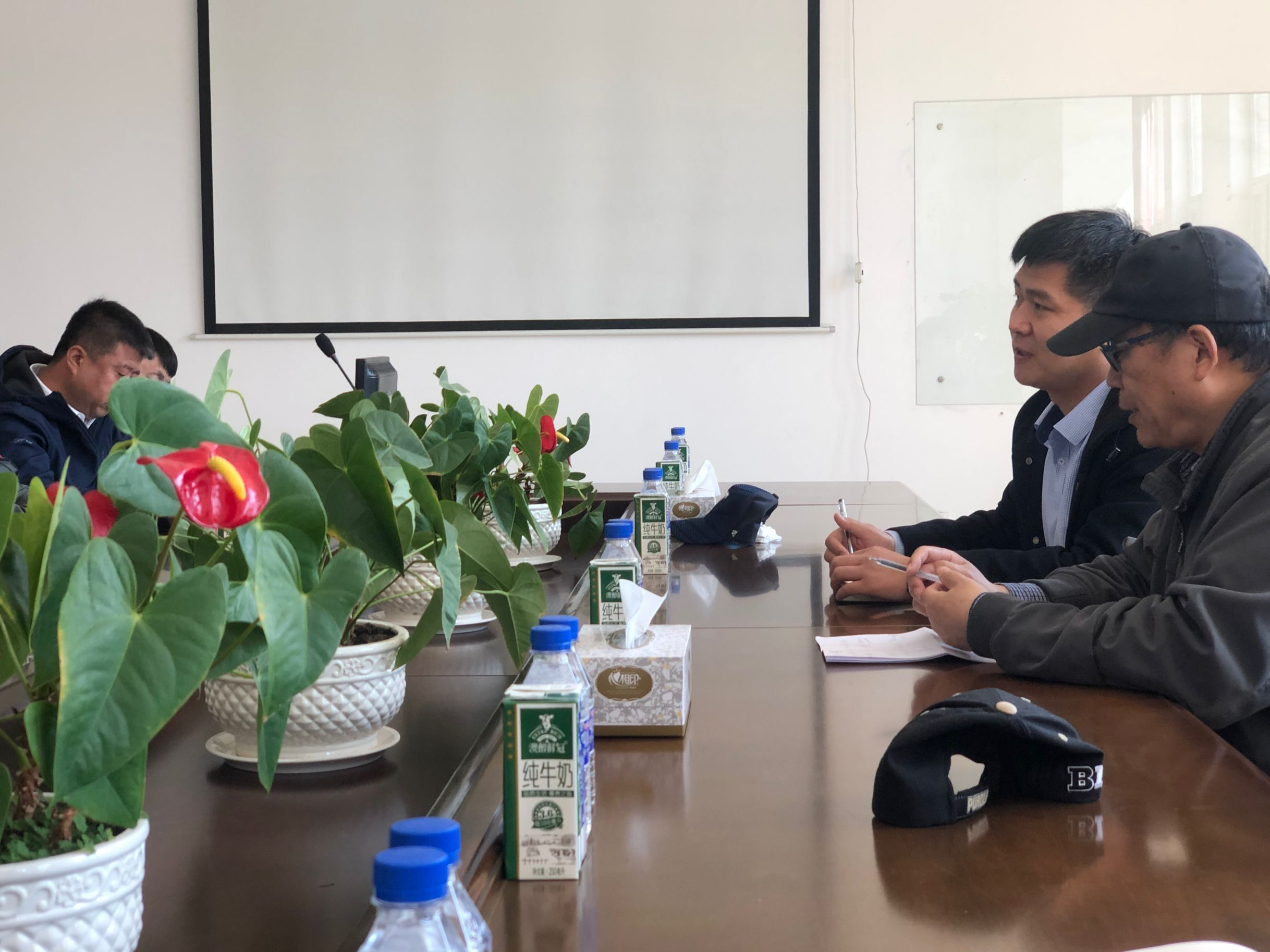 接着,副经理王化磊对牧硕公司先进的管理方式给予很高评价,详细询问了牧场饲养方式,疫苗接种情况,牛群的群体结构,流行病学背景和当地流行病流行史,提出利用永利yl23455先进实验室检测条件,解决牧场实际问题,同时其他教授也结合自身的科研经验提出建设性建议。