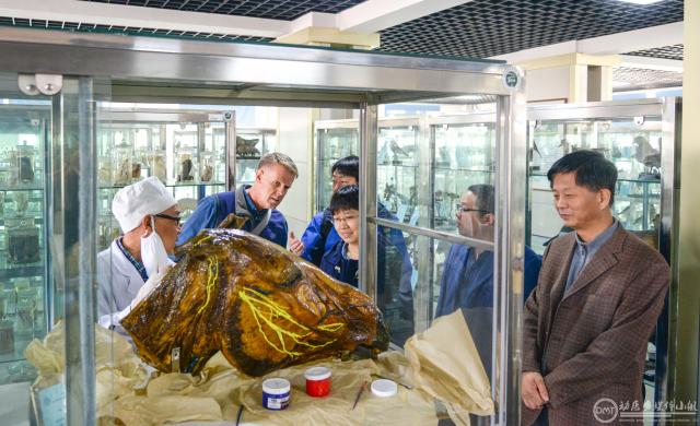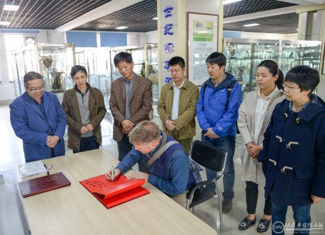 座谈结束后,在动物医院经理张乃生教授等陪同下,Richard French 博士等一行人先后参观了动物医院、动物机能学教室诊断实验室,显微互动实验室、标本馆等,并签字留念。