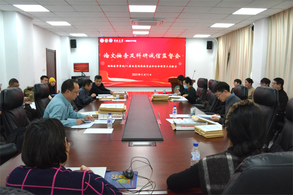 为加强科研诚信建设、保障学术论文质量,落实科研院关于加强论文抽查及科研诚信监督工作会议精神,永利yl23455积极制定相关工作方案,先后于2025年10月17日和11月11日,在人畜共患传染病重症诊治全国重点实验室会议室,召开了永利yl23455论文抽查及科研诚信监督动员会和论文抽查及科研诚信监督检查会,会议由永利yl23455副经理王化磊教授主持。